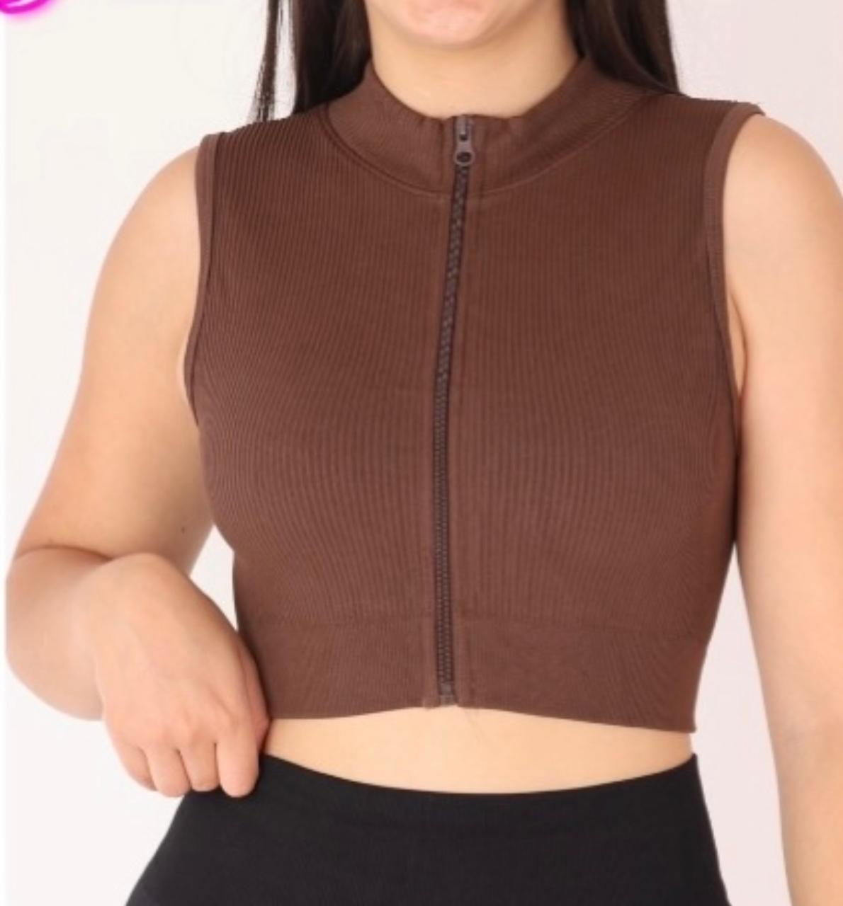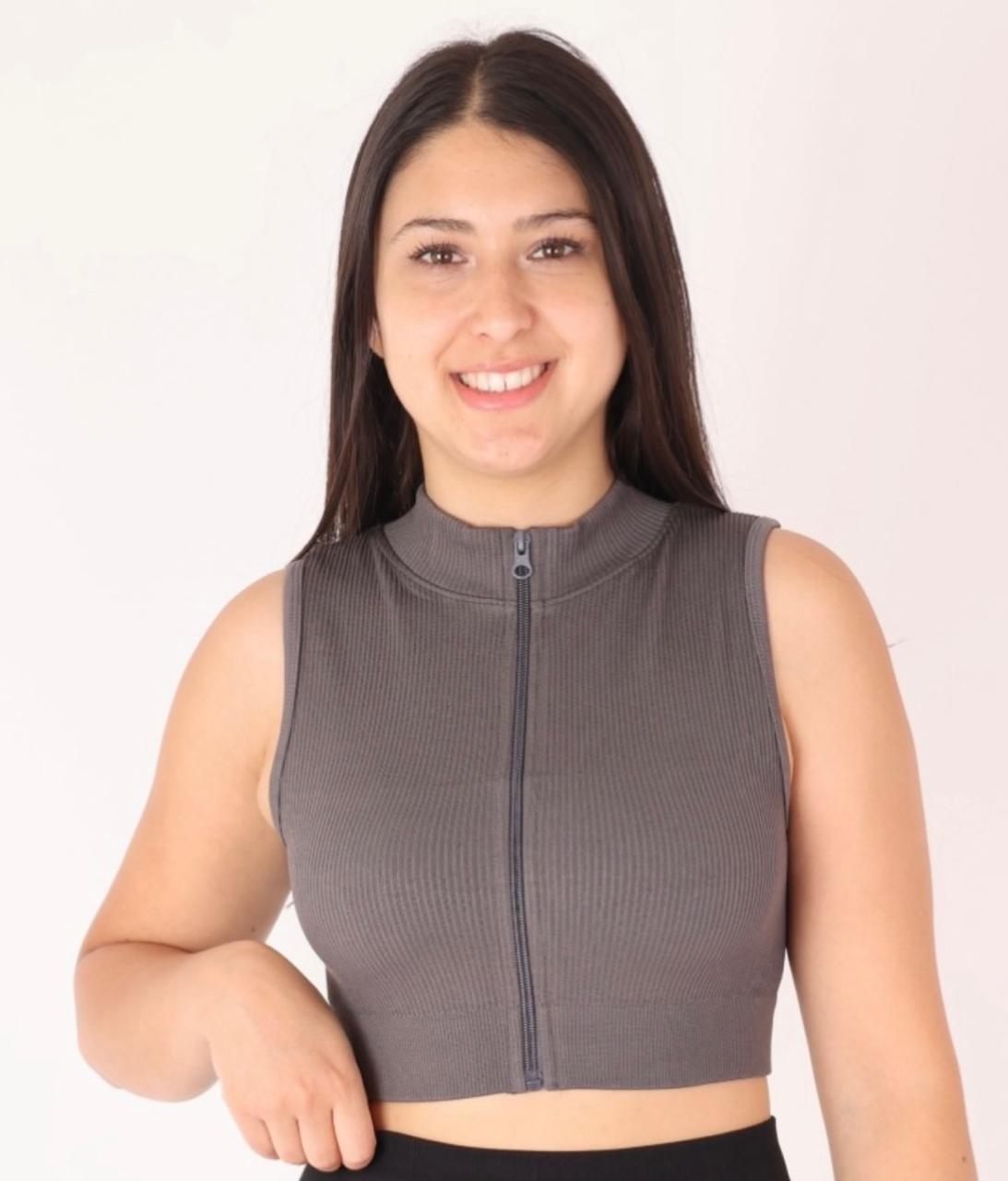 Top deportivo con cierre frontal