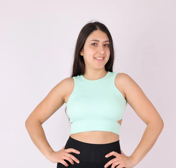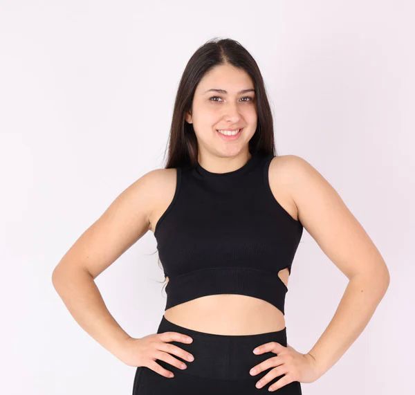 Material: Tejido acanalado (rib) con mezcla elástica tipo poliéster/nylon + spandex. Suave, cómoda y con buen ajuste.